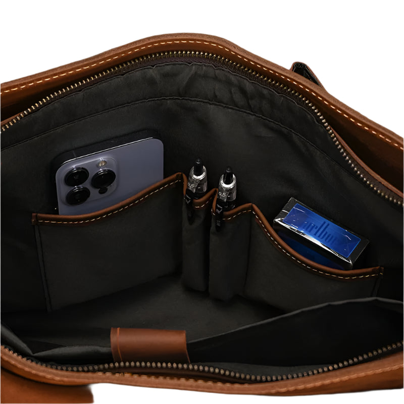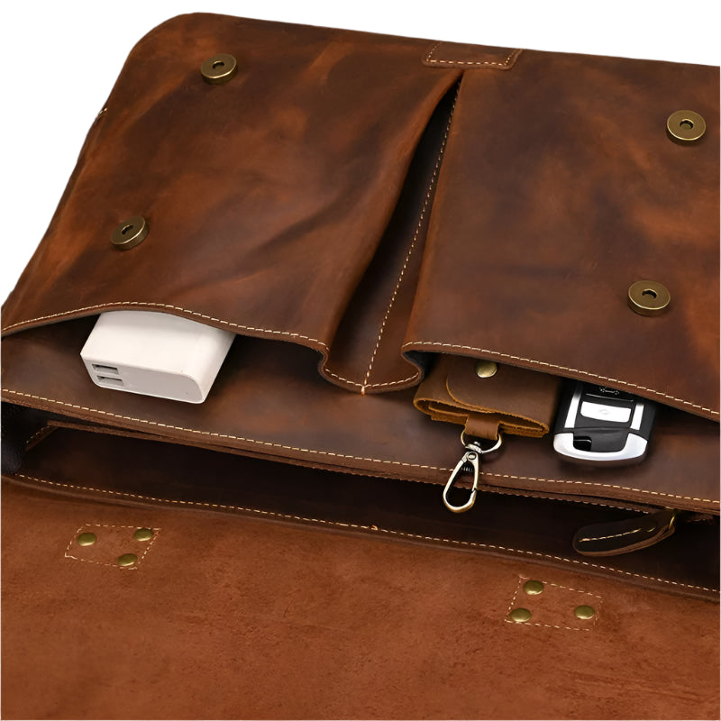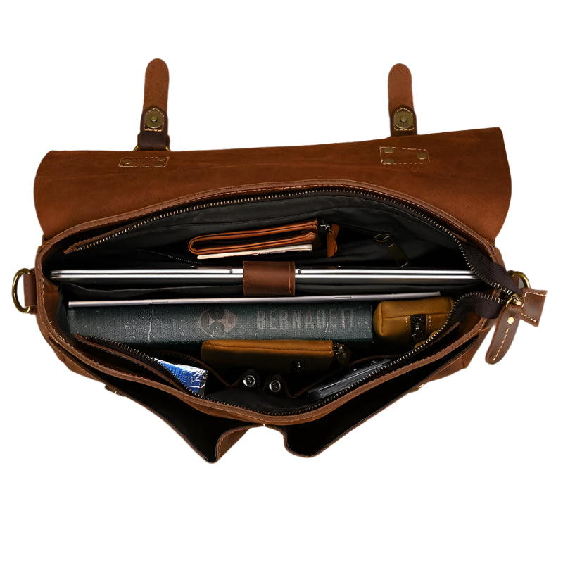 The Executive Commuter is a stylish and durable genuine leather messenger bag that helps you stay organized. Perfect for work or daily use. it combines classic design with practical features for the modern professional.