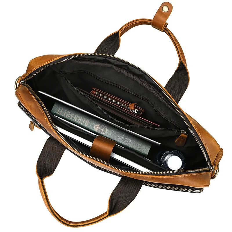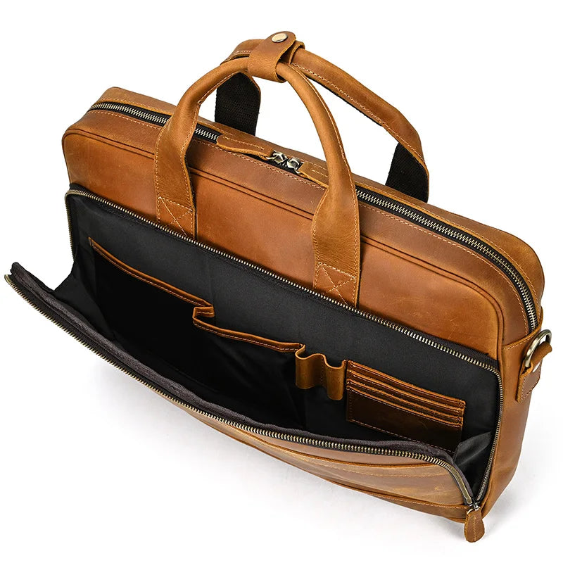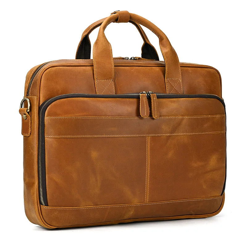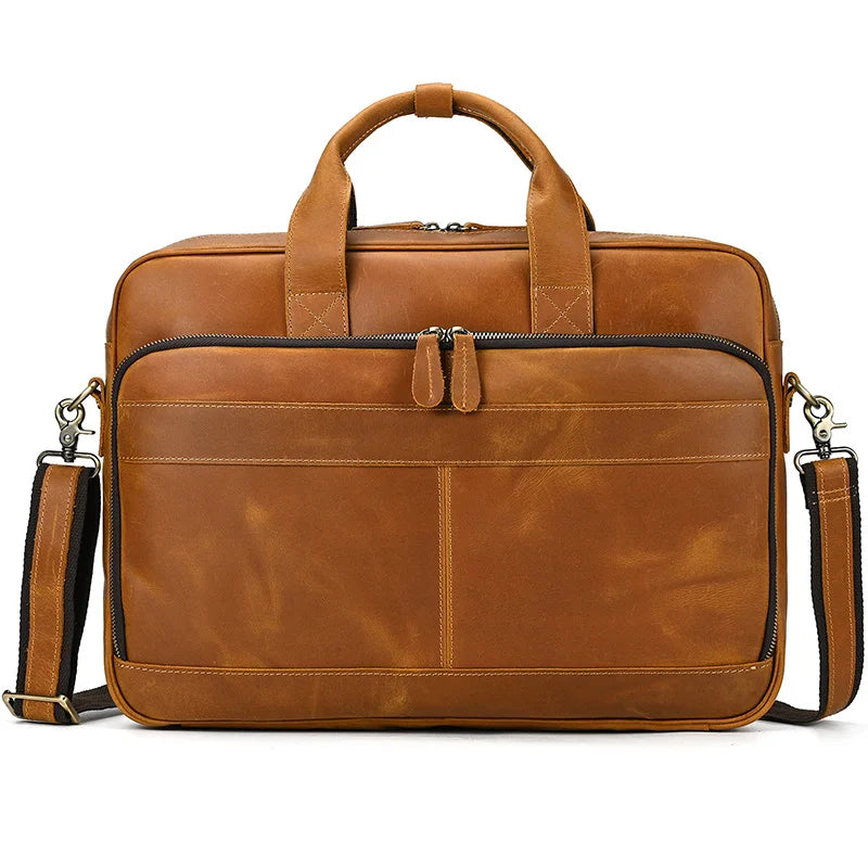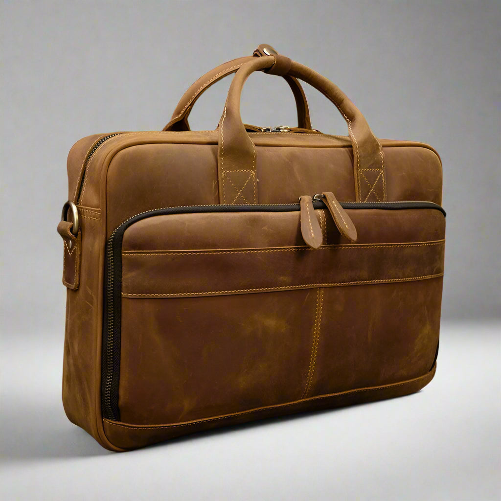 Elevate your professional image with the Executive Briefcase. Crafted from genuine cow leather. this vintage-inspired briefcase offers a sophisticated blend of timeless style and practical functionality. Designed for the modern man. it provides secure and organised transport for your essential business tools.